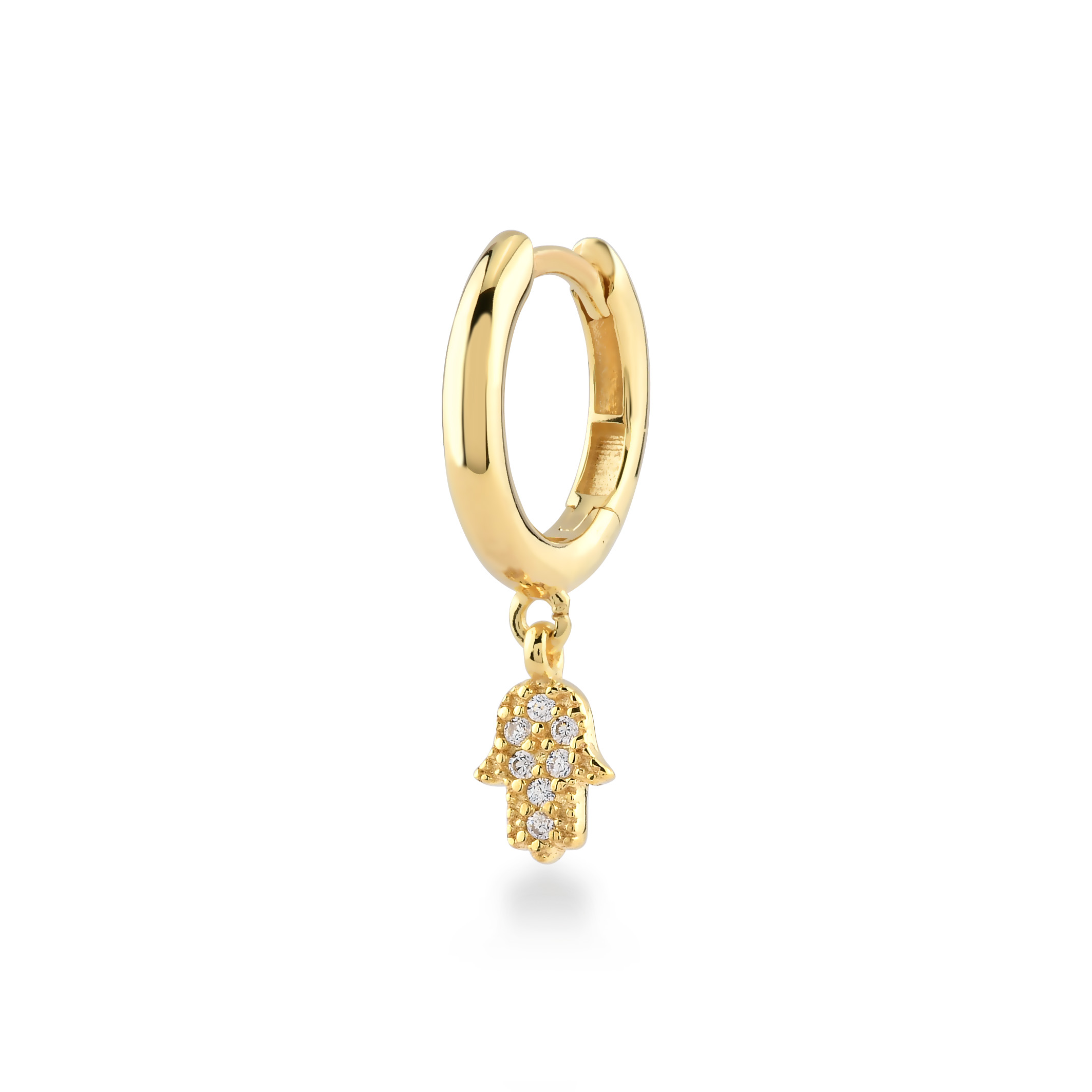 Mini Hamsa Huggie With Star Cut Stones (SOLD INDIVIDUALLY)