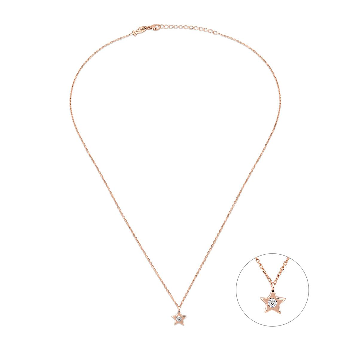 925 Sterling Silver. RH Rhodium plated White Gold or RG plated 24K Rose Gold. Star charm has 1 tiny genuine cubic zirconia stone in the centre. Tiny star measure 7mm approx. Chain length 39cm with 3cm ext. By Kurshuni