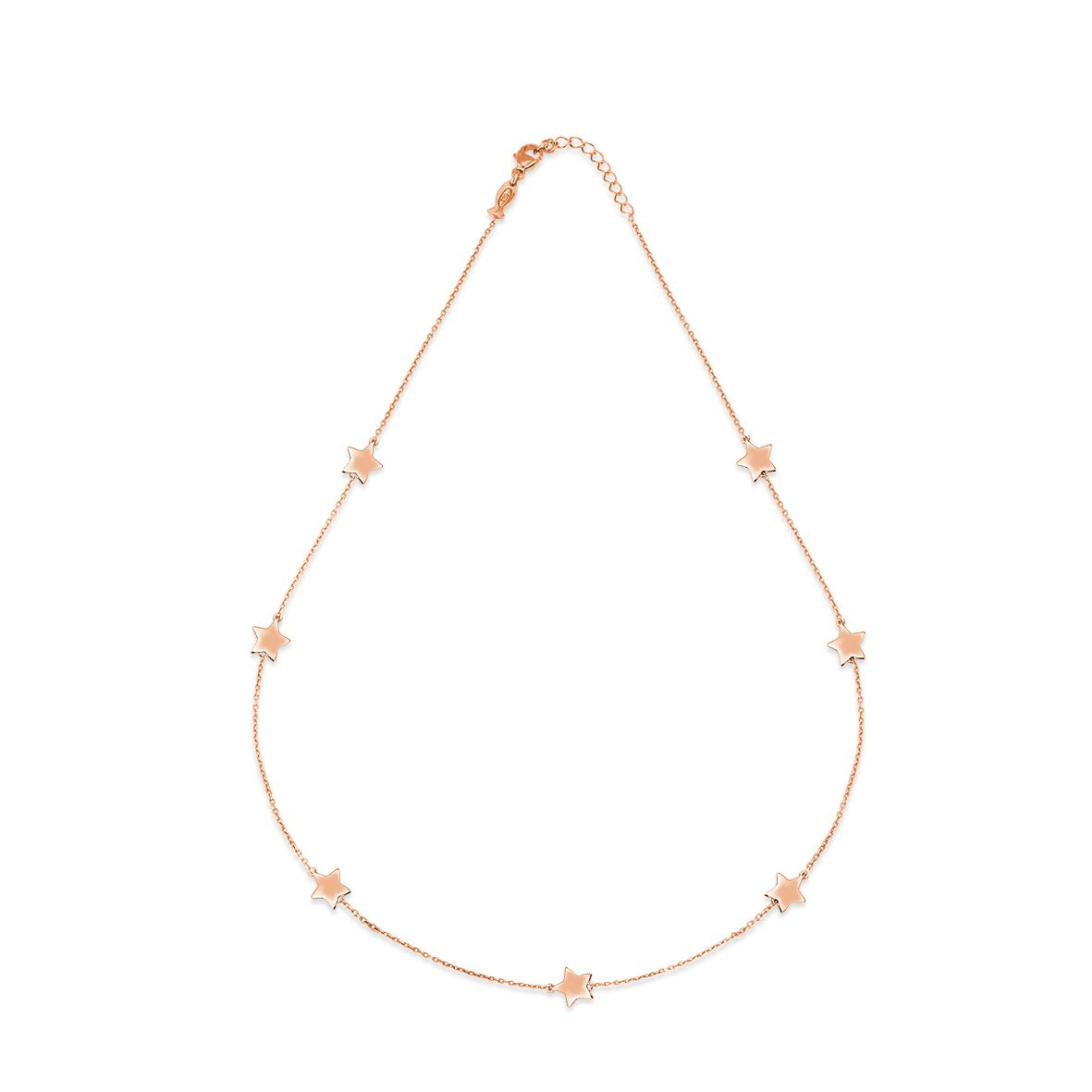 925 Sterling Silver. RH Rhodium plated White Gold or RG plated 24K Rose Gold. Necklace has 7 X 6mm stars evenly spaced thru the necklace. Standard chain length 44cm approx, inc ext. By Kurshuni